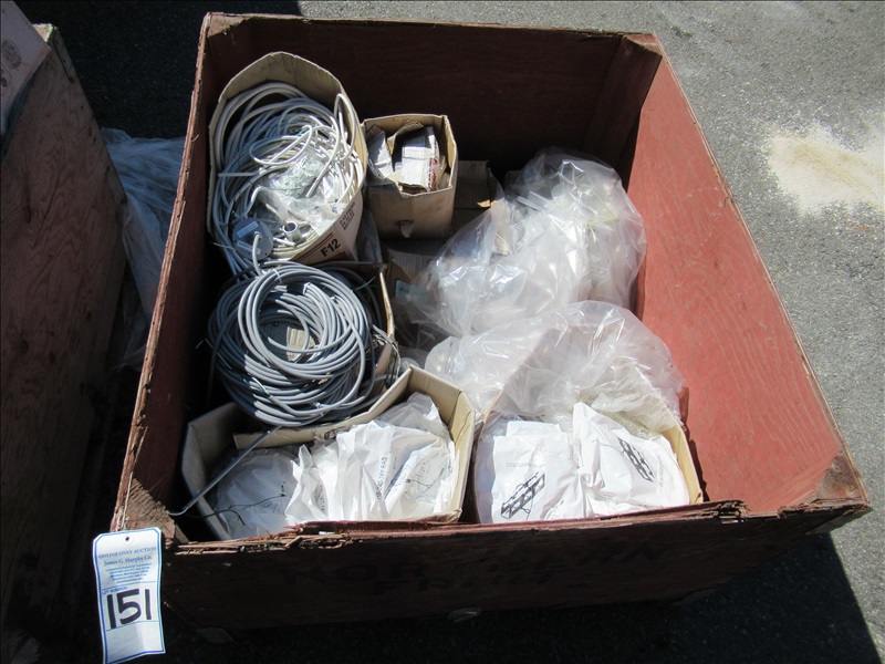 LOT, ASSORTED FIXTURE HANGERS & WIRE IN THIS BIN W/BIN
