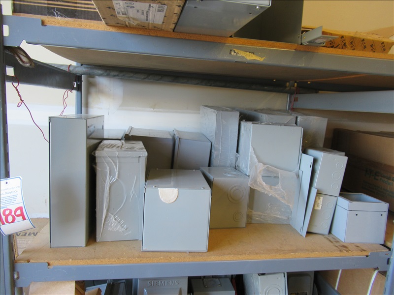 LOT, ASSORTED JUNCTION BOXES ON THIS SHELF SECTION