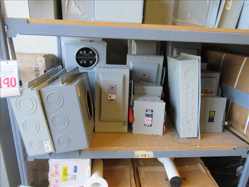 LOT, ASSORTED SAFETY SWITCHES ON THIS SHELF SECTION