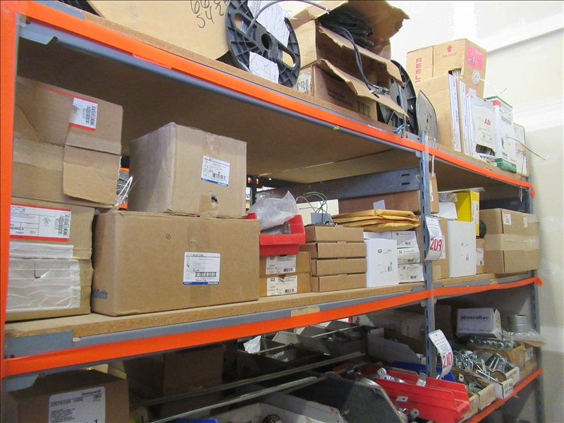 LOT, ASSORTED THRU-FLOOR FITTINGS, FLOOR BOXES & COVERS ON THESE (2) SHELF SECTIONS