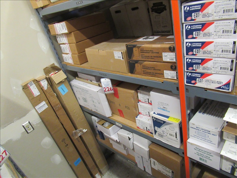 LOT, ASSORTED EMERGENCY LIGHTING FIXTURES IN THIS SHELF SECTION