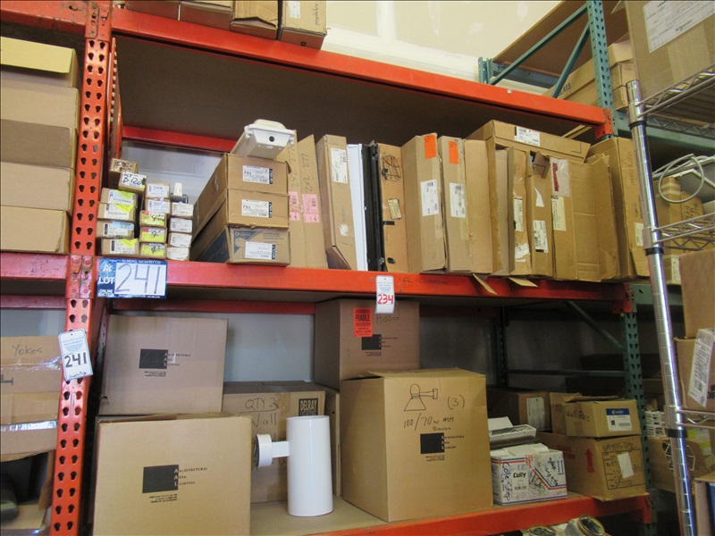 LOT, ASSORTED FLUORESCENT LIGHT FIXTURES ON THIS SECTION OF PALLET RACK