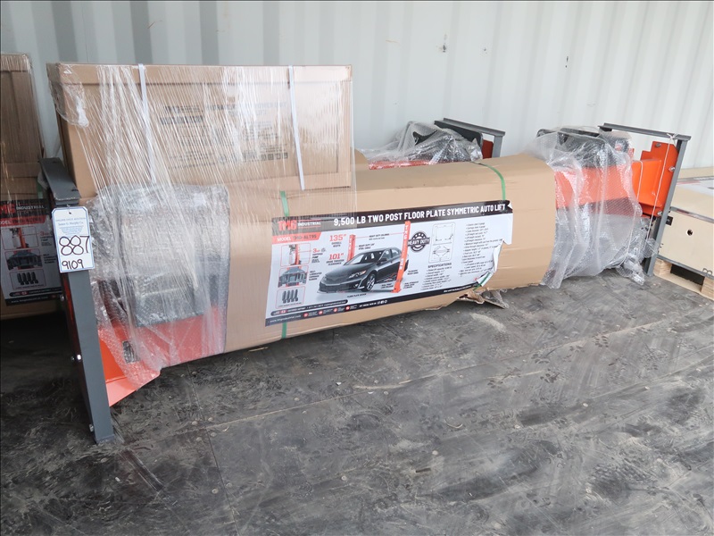 9,500 LB 2-POST FLOOR PLATE SYMMETRIC AUTO LIFT W/HYDRAULIC POWER UNIT (UNUSED)