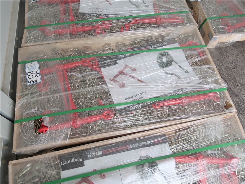 LOT, (5) 5,400 LB CAP RATCHET BINDERS & (10) 5/16" X 20' G70 CHAIN W/END HOOKS (UNUSED)
