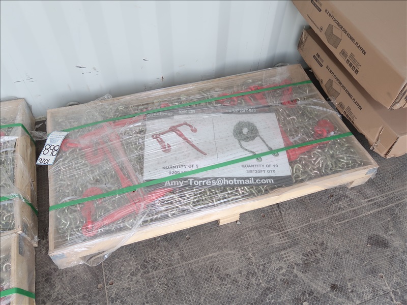 LOT, (5) 9,200 LB CAP RATCHET BINDERS & (10) 3/8" X 20' G70 CHAIN W/END HOOKS (UNUSED)