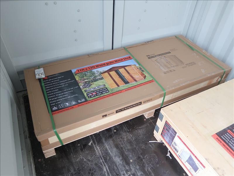 12'L X 11'W WOOD GRAIN METAL SHED (UNUSED)
