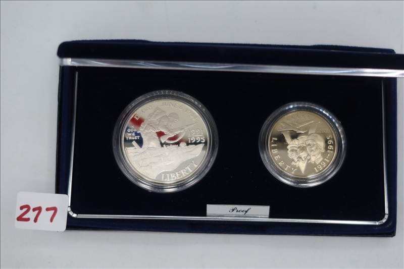 LOT, 1991-1995 WORLD WAR 2 50TH ANNIVERSARY COMMEMORATIVE COINS (2 COIN PROOF SET)