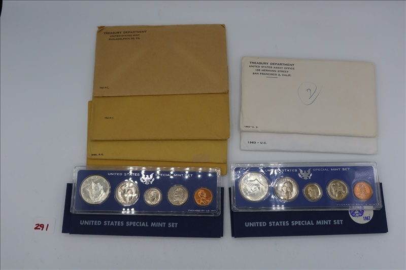 LOT, (1) 1961 US MINT SET, (2) 1962 MINT SETS, (2) 1963 MINT SET, (1) 1966 MINT SET, (1) 1966 MINT SET, & (1) 1967 MINT SETS