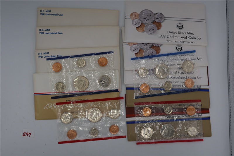 LOT, (3) 1981 US MINT SETS, (2) 1984 US MINT SETS, (1) 1986 US MINT SET, & (3) 1988 US MINT SETS