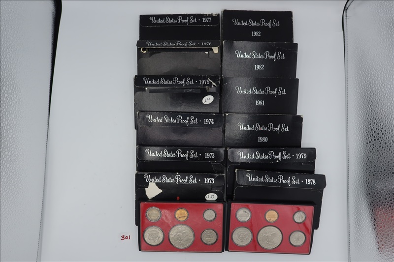 LOT, (2) 1973 US PROOF SETS, (8) 1974-1981 US PROOF SETS, & (2) 1982 US PROOF SETS