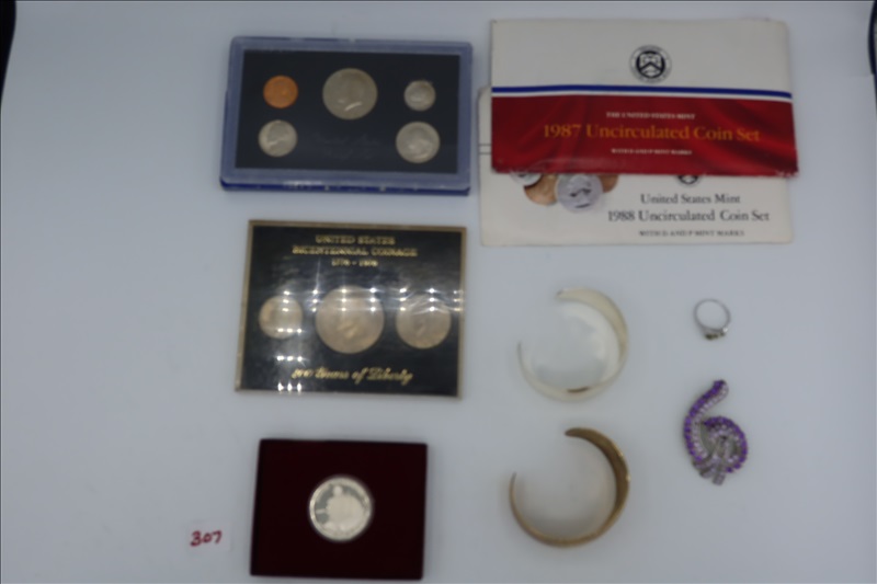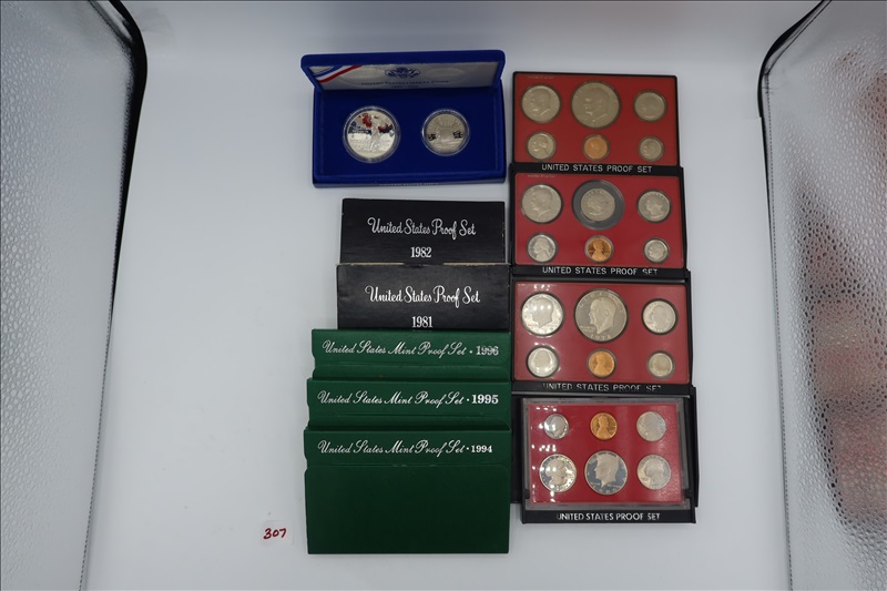 LOT, (1) GEORGE WASHINGTON COMMEMORATIVE HALF DOLLAR (90% SILVER), (1) UNITED STATES LIBERTY COINS (2 COIN PROOF SET)(SILVER AND HALF DOLLAR), (1) US BICENTENNIAL COINAGE 200 YEARS OF LIBERTY, (2) US MINT SETS 1987 & 1988, (7) 1977-1983 US PROOF SETS, (3)
