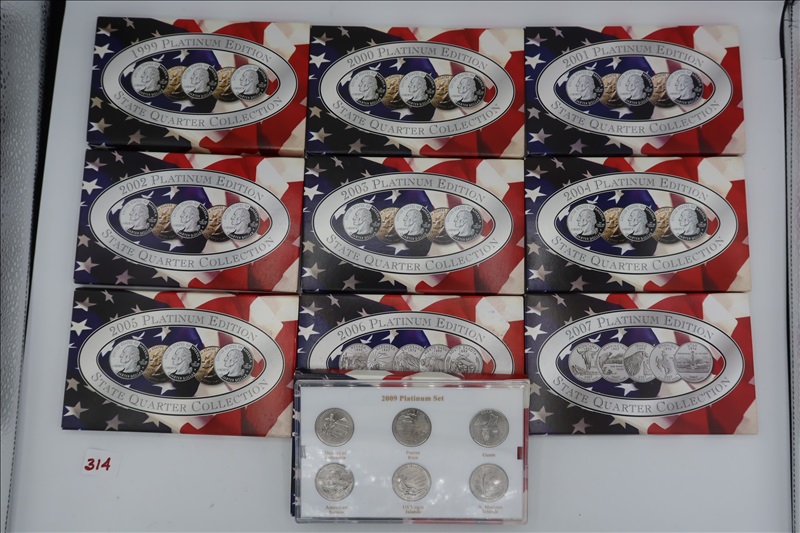 LOT, (9) 1999-2007 PLATINUM EDITION STATE QUARTER COLLECTION, & (1) 2009 PLATINUM EDITION TERRITORY QUARTER COLLECTION