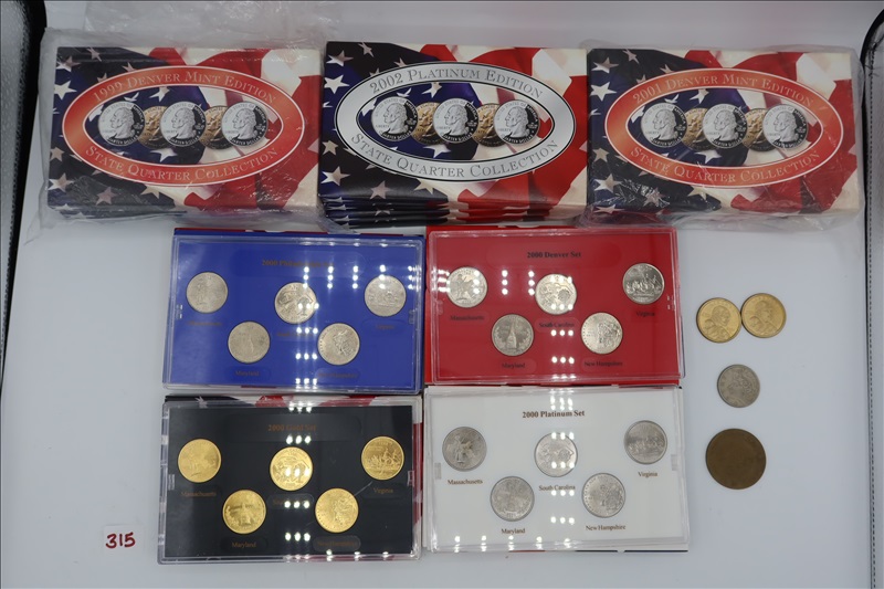 LOT, (4) 1999-2001 PHILADELPHIA MINT EDITION STATE QUARTER COLLECTION, (4) 1999-2001 DENVER MINT EDITION STATE QUARTER COLLECTION, (4) 1999-2001 GOLD EDITION STATE QUARTER COLLECTION, (4) 1999-2001 PLATINUM EDITION STATE QUARTER COLLECTI0N, (2) SACAGAWEAS