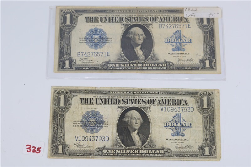 LOT, (2) 1923 $1 SILVER CERTIFICATES (LARGE BILLS) SERIAL NUMBERS:B74276571E & V10943793D