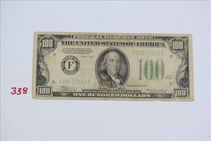 LOT, (1) 1934 $100 FEDERAL RESERVE NOTE SERIAL NUMBER: F02177163A (TORN)