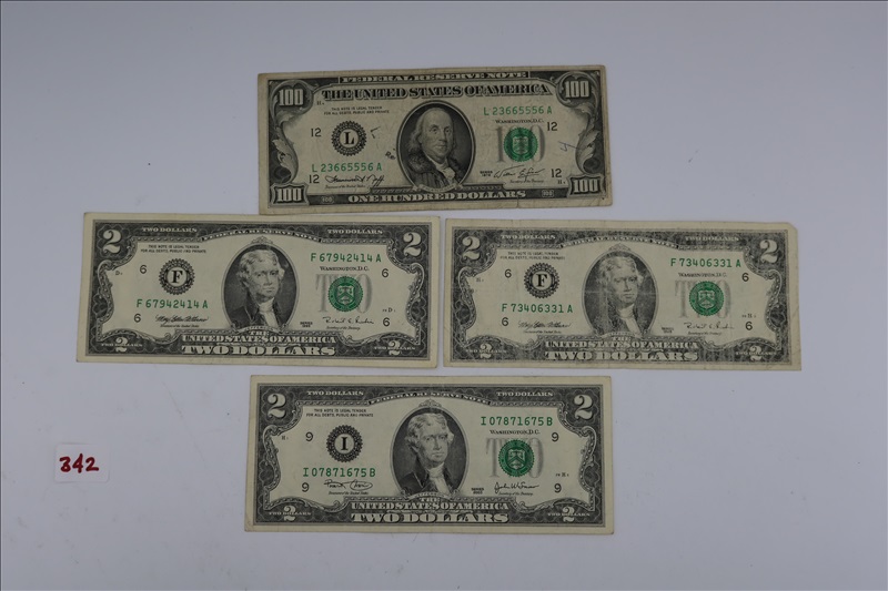 LOT, (1) 1974 $100 FEDERAL RESERVE NOTE, & (3) $2 FEDERAL RESERVE NOTES