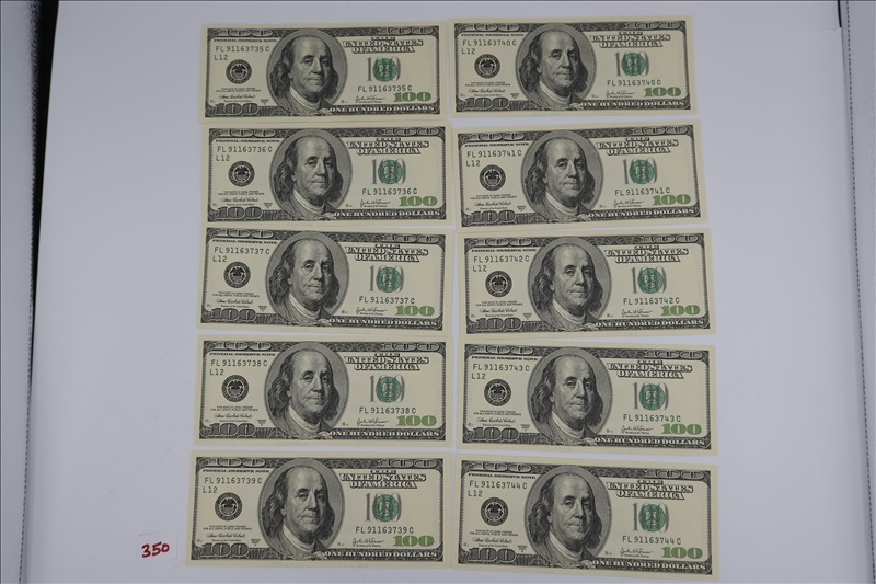 LOT, (10) 2003A $100 FEDERAL RESERVE NOTES SEQUENTIAL SERIAL NUMBERS