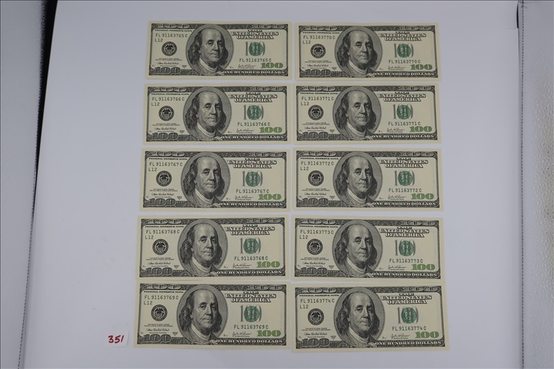 LOT, (10) 2003 $100 FEDERAL RESERVE NOTES SEQUENTIAL SERIAL NUMBERS
