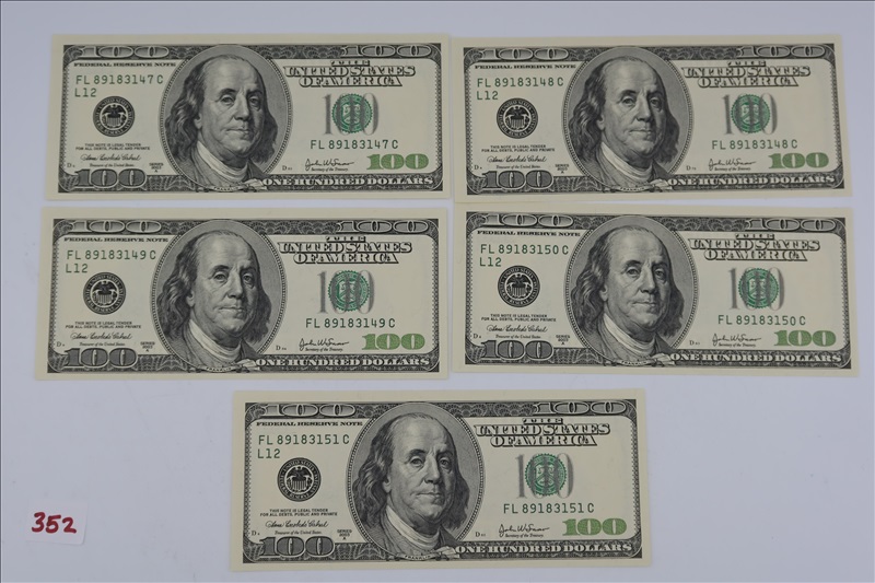 LOT, (5) 2003A $100 FEDERAL RESERVE NOTES SEQUENTIAL SERIAL NUMBERS