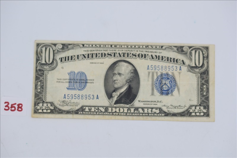 LOT, (1) 1934 $10 SILVER CERTIFICATE