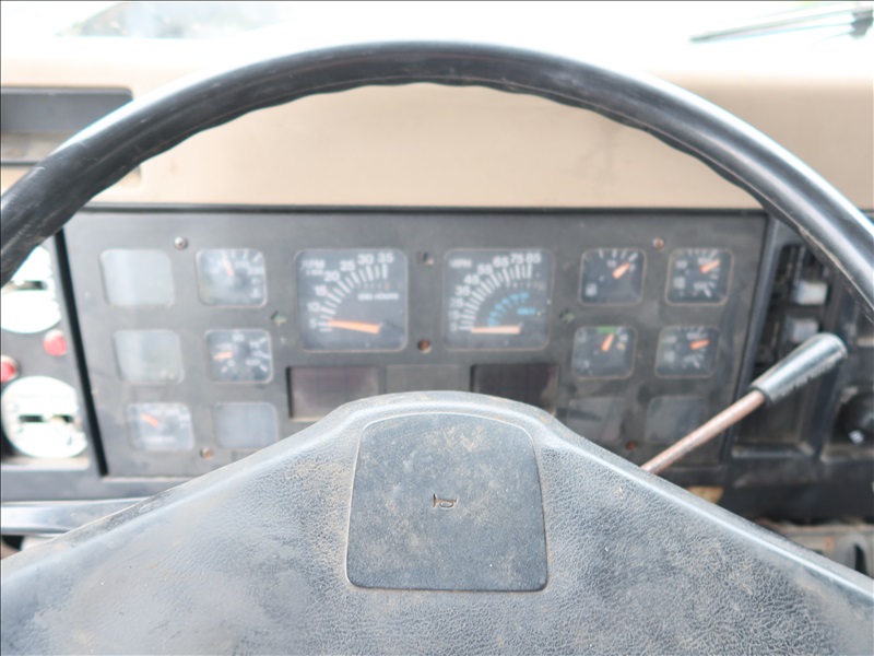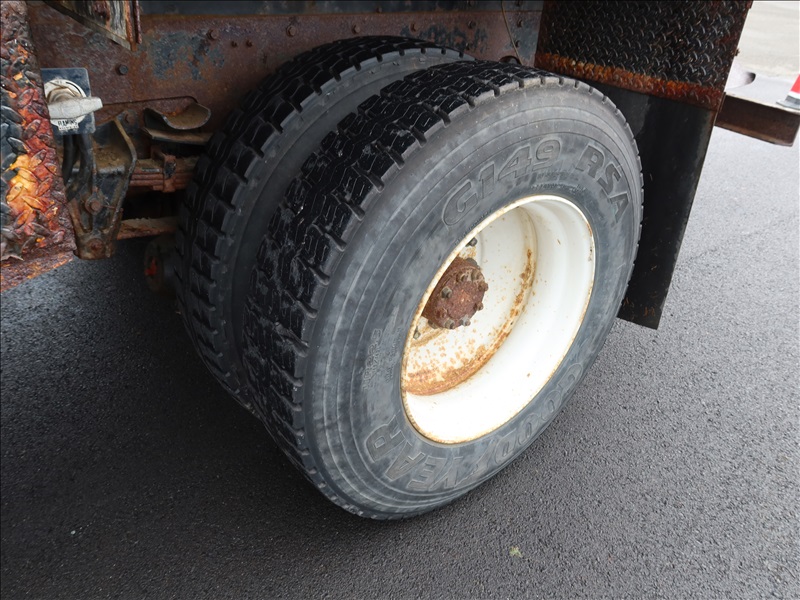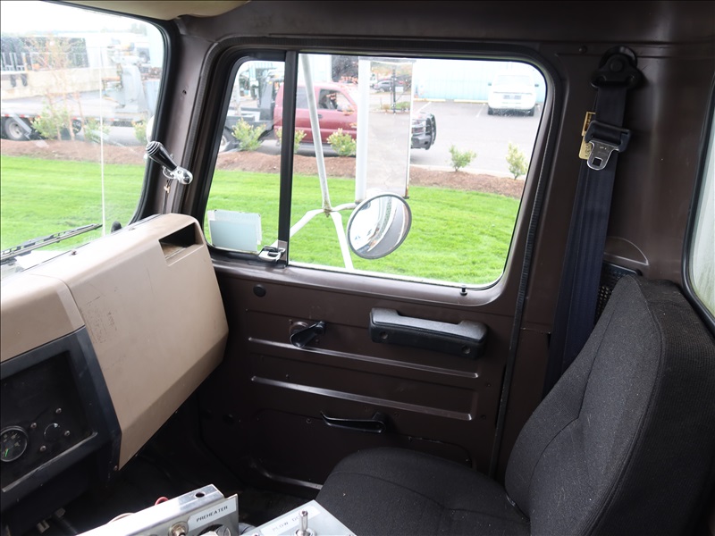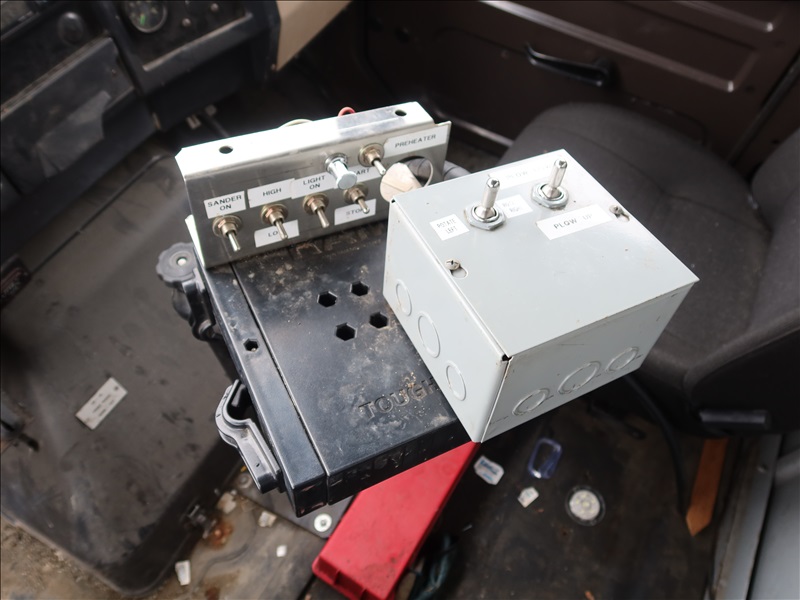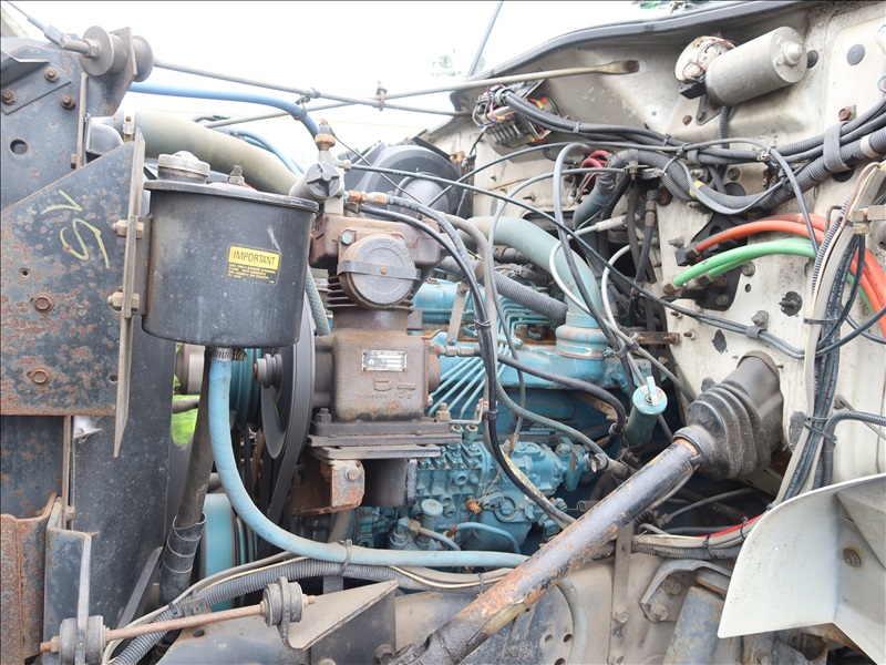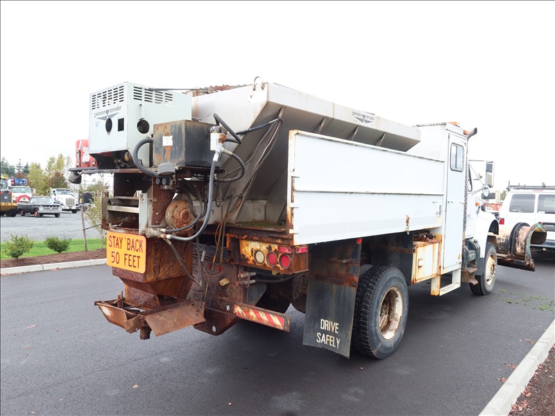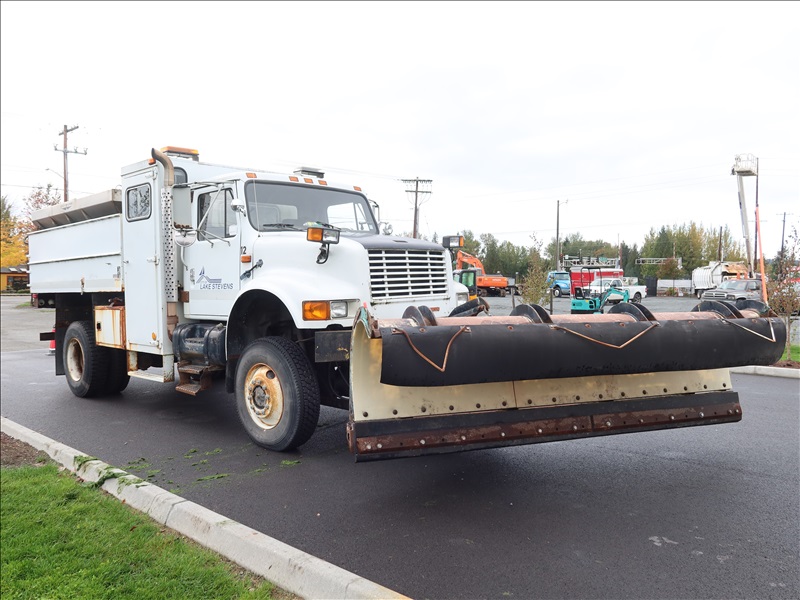 DUMP TRUCK, 10' STEEL BOX, DT466, AUTO, SWENSON SPREADER, 10' SNOW PLOW (DUMP HOIST DISABLED, WELDED TO FRAME, CONSIGNOR DISCLOSURE: STARTER SOLENOID STICKS, MAY NEED TO JUMP FROM SOLENOID)