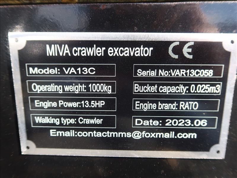 MINI EXCAVATOR, 13.5 HP RATO 420 CC, 1 CYL, 15" BUCKET, THUMB, AUX HYD, BLADE, RUBBER TRACKS, CAB