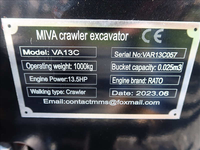 MINI EXCAVATOR, 13.5 HP RATO 420 CC, 1 CYL, 15" BUCKET, THUMB, AUX HYD, BLADE, RUBBER TRACKS, CAB