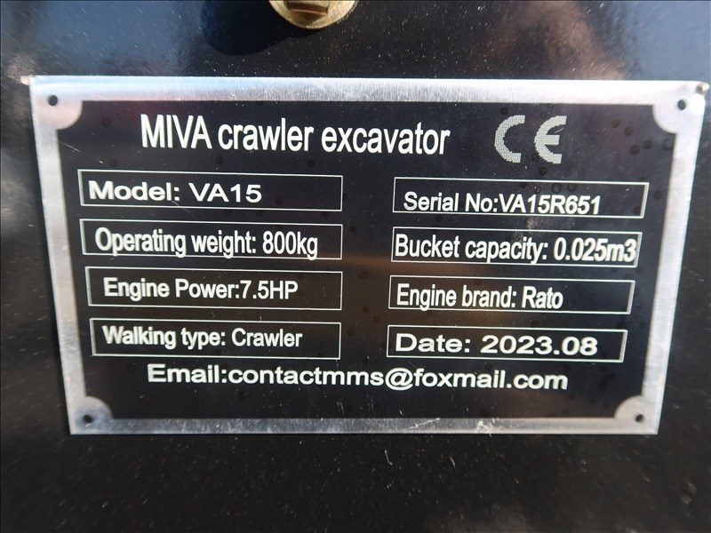 MINI EXCAVATOR, 7.5 HP RATO 420CC, 1 CYL, 15" BUCKET, THUMB, AUX HYD, BLADE, RUBBER TRACKS, CANOPY