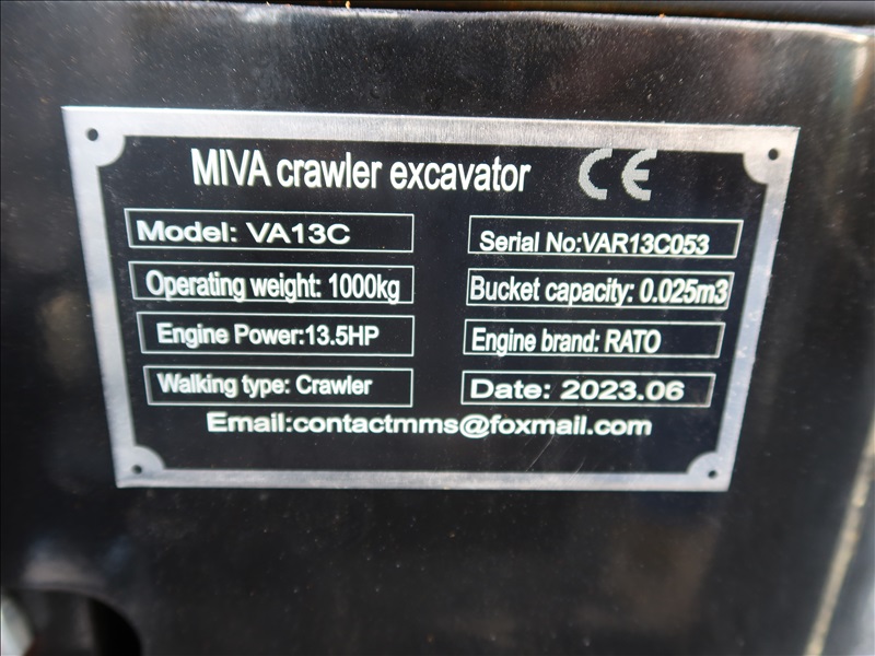 MINI EXCAVATOR, 13.5 HP RATO 420 CC, 1 CYL, 15" BUCKET, THUMB, AUX HYD, BLADE, RUBBER TRACKS, CAB