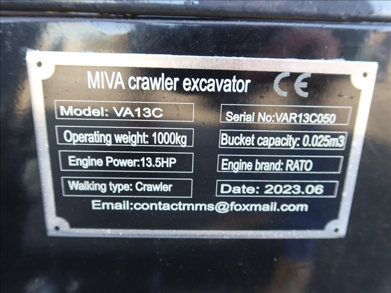MINI EXCAVATOR, 13.5 HP RATO 420 CC, 1 CYL, 15" BUCKET, THUMB, AUX HYD, BLADE, RUBBER TRACKS, CAB