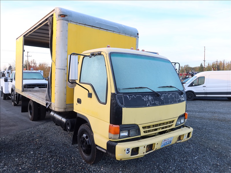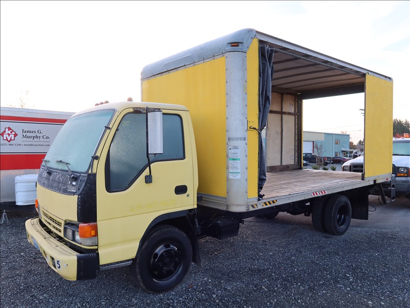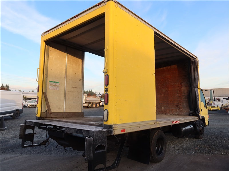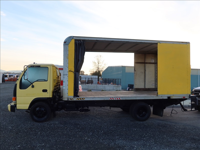 16' CURTAIN TRUCK, 4 CYL DIESEL, AUTO, LIFTGATE (ENGINE RUNS POOR, EXCESSIVE OIL LEAK)