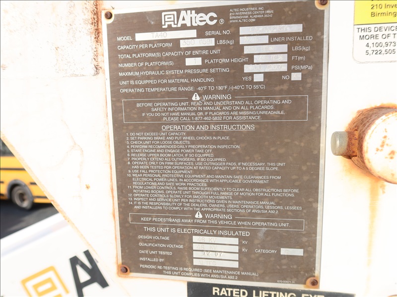 BUCKET TRUCK, MAXXFORCE, AUTO, ALTEC TA40, 41', 350 LB, A/B