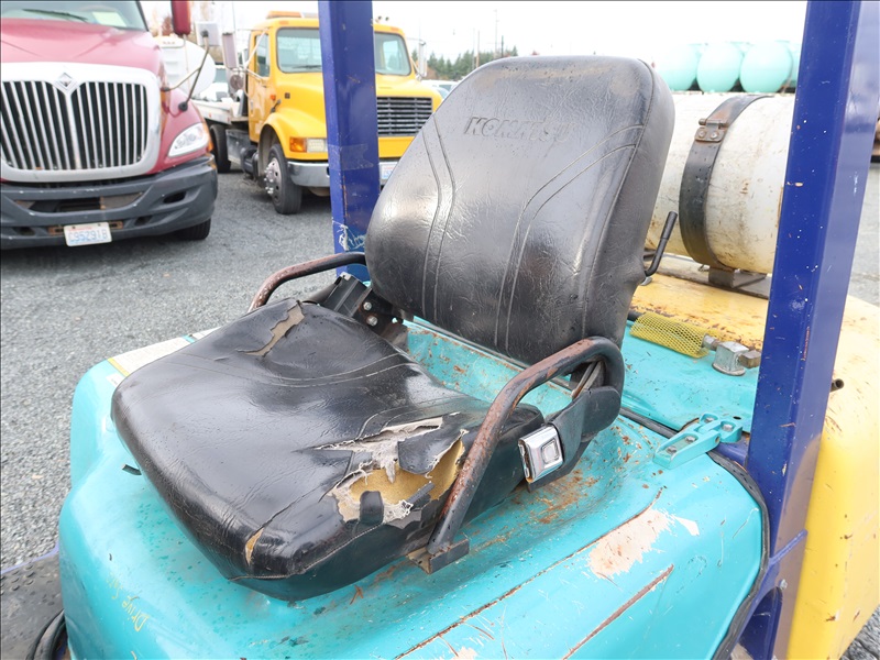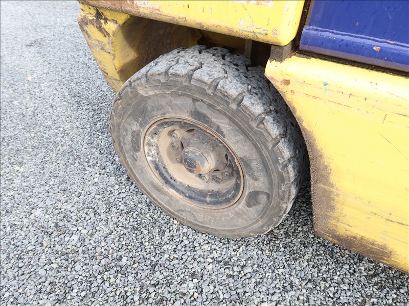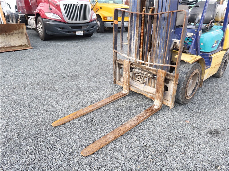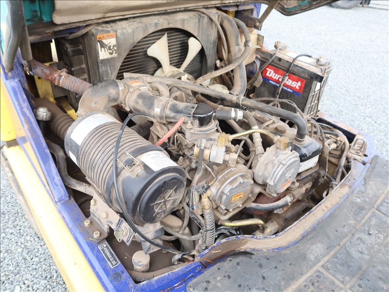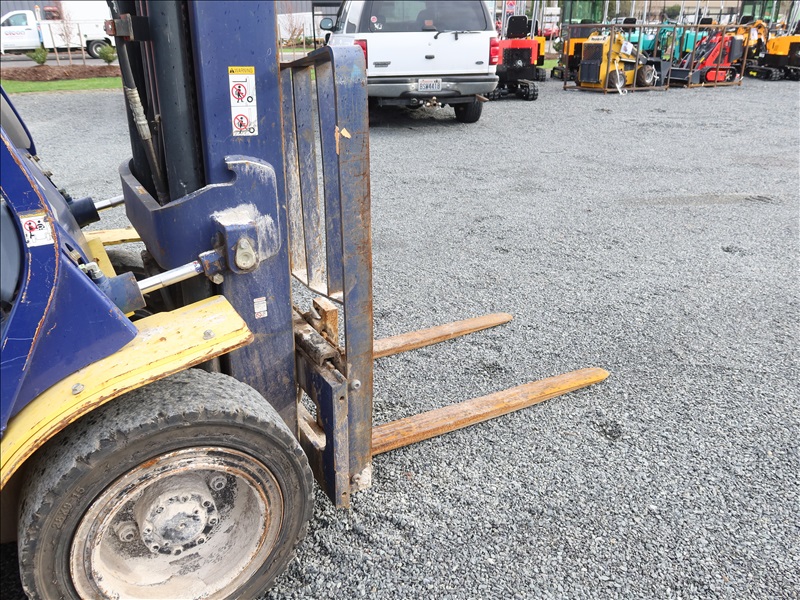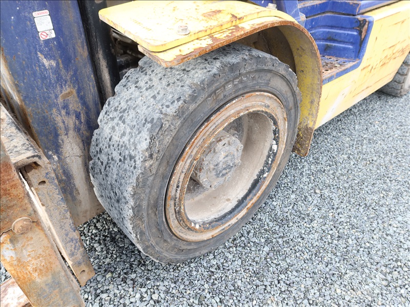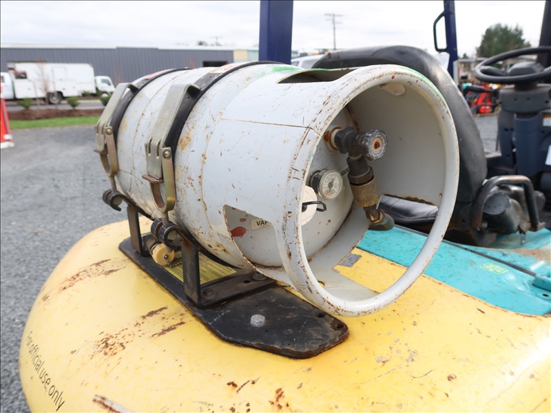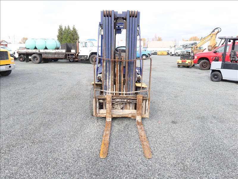 6,000 LB SOLID CUSHION TIRE FORKLIFT, 240" FORK HEIGHT, 4-STAGE MAST, SIDE SHIFT, NISSAN 4 CYL GAS/LPG (EXCESSIVE ENGINE SMOKE)
