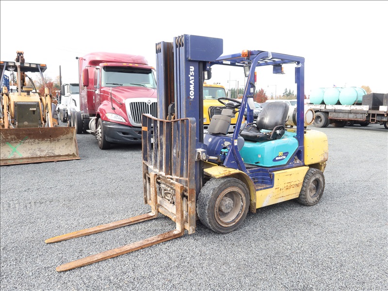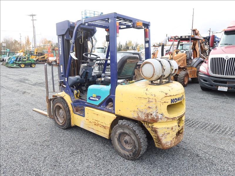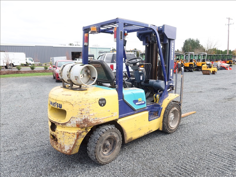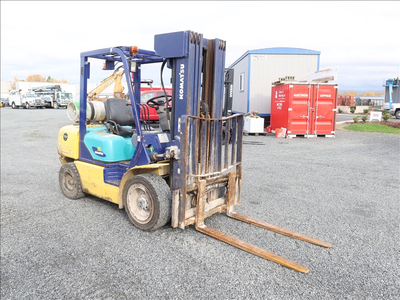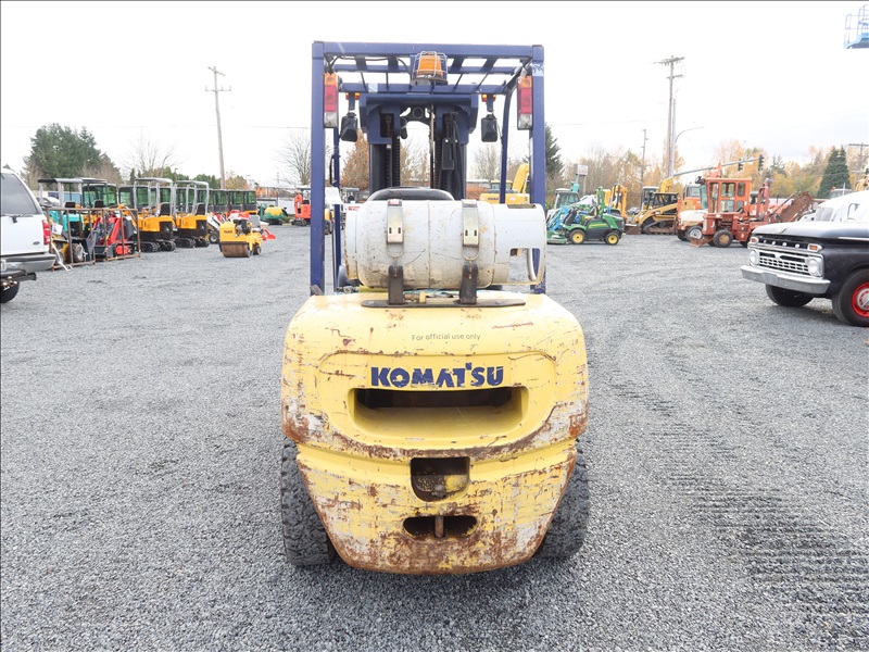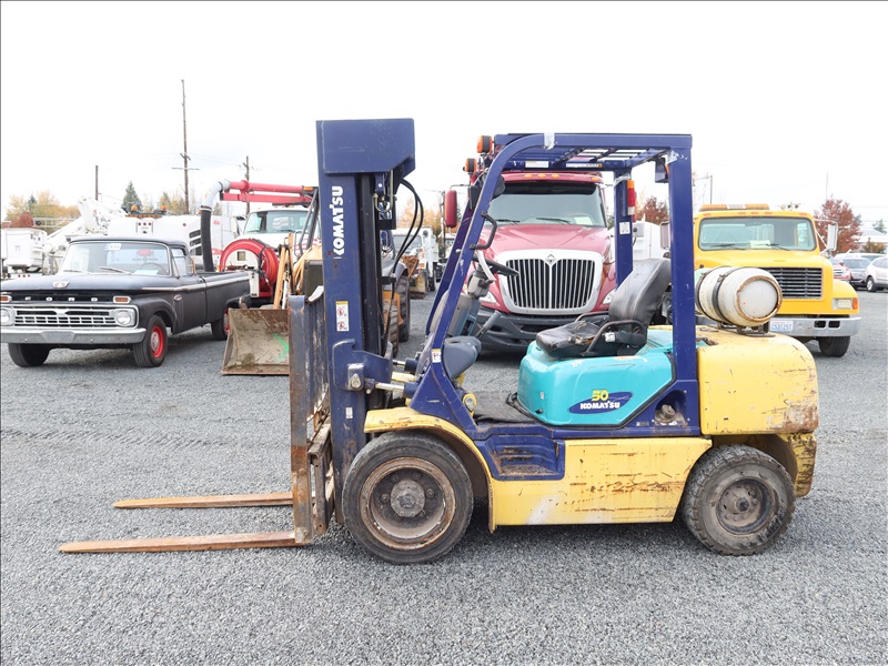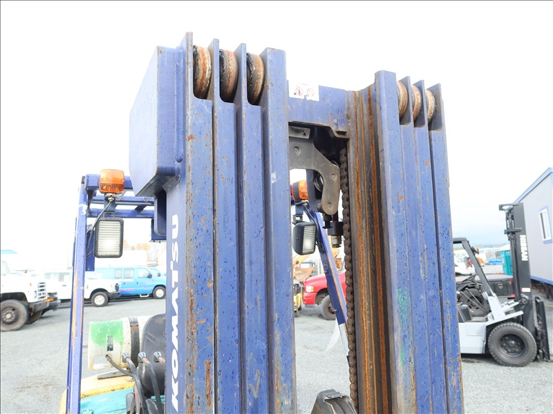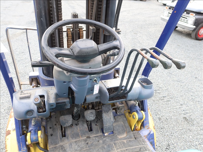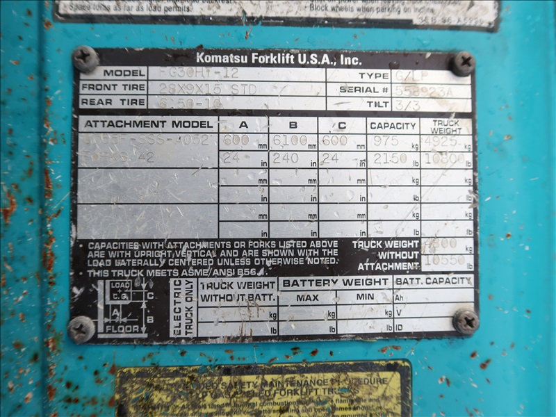 6,000 LB SOLID CUSHION TIRE FORKLIFT, 240" FORK HEIGHT, 4-STAGE MAST, SIDE SHIFT, NISSAN 4 CYL GAS/LPG (EXCESSIVE ENGINE SMOKE)