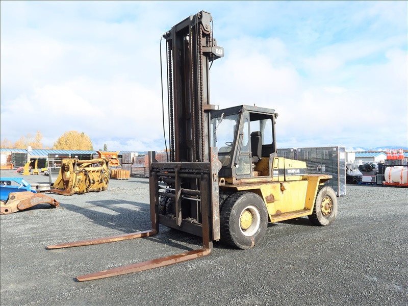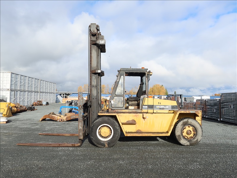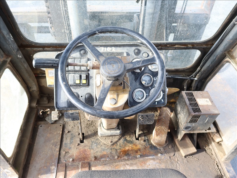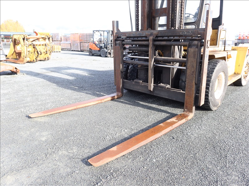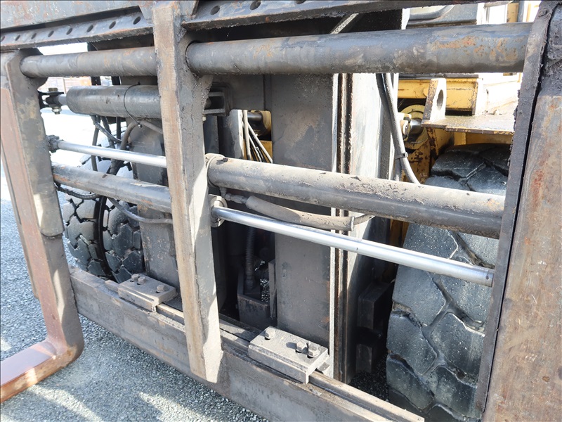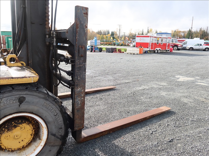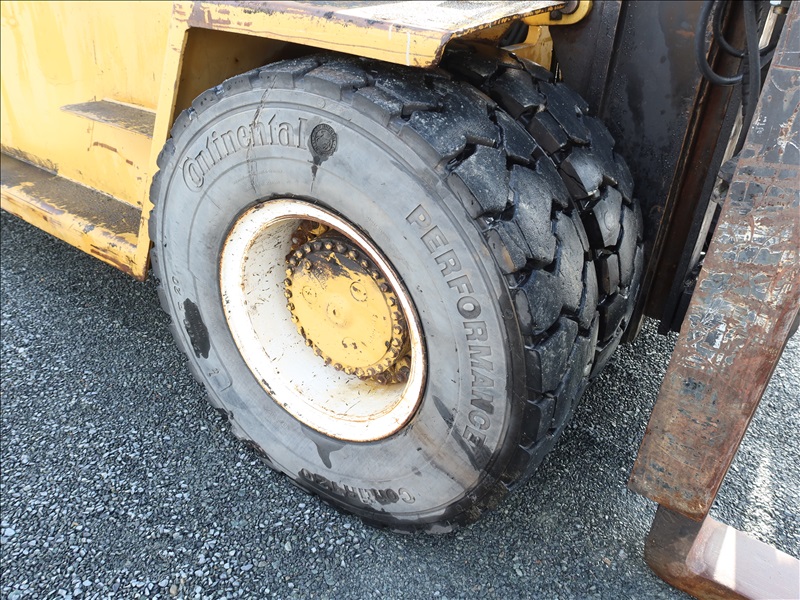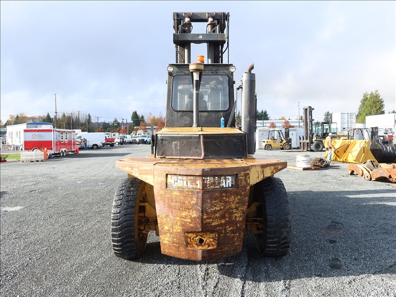 33,000 LB DUAL PNEUMATIC TIRE FORKLIFT, 206" FORK HEIGHT, 2-STAGE MAST, 7'4" FORKS, FORK POSITIONERS, SIDE SHIFT, CAT 3208, CAB (REQUIRES ETHER TO START)