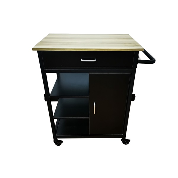 (120)Multi-purpose Storage Movable Storage Utility Rack - 3 Tier Shelving with Drawers - Black