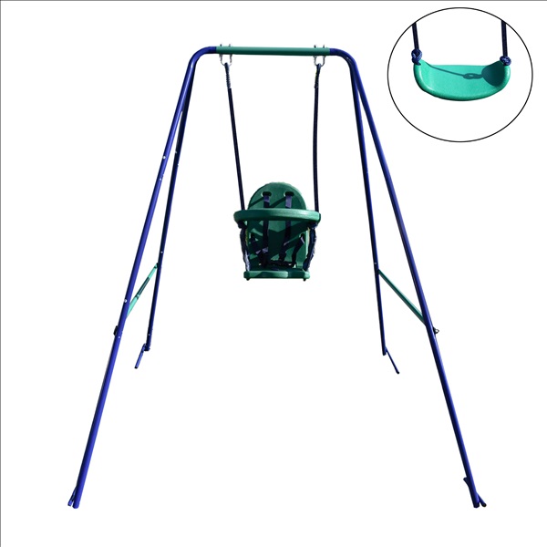 (1000)Outdoor Sturdy Child Swing Set with 2 Swings and 1 Glider - Blue and Green