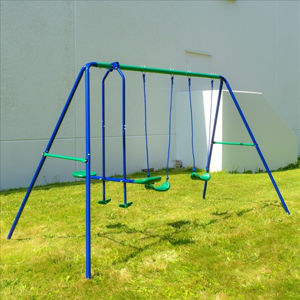(1100)Outdoor Sturdy Child Swing Set with 2 Swings and 1 Glider - Blue and Green