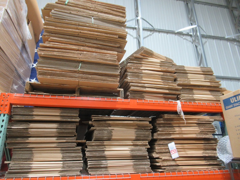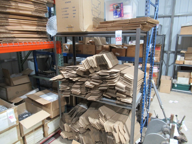 LOT, ASSORTED BOXES ON THESE (5) SHELF SECTIONS
