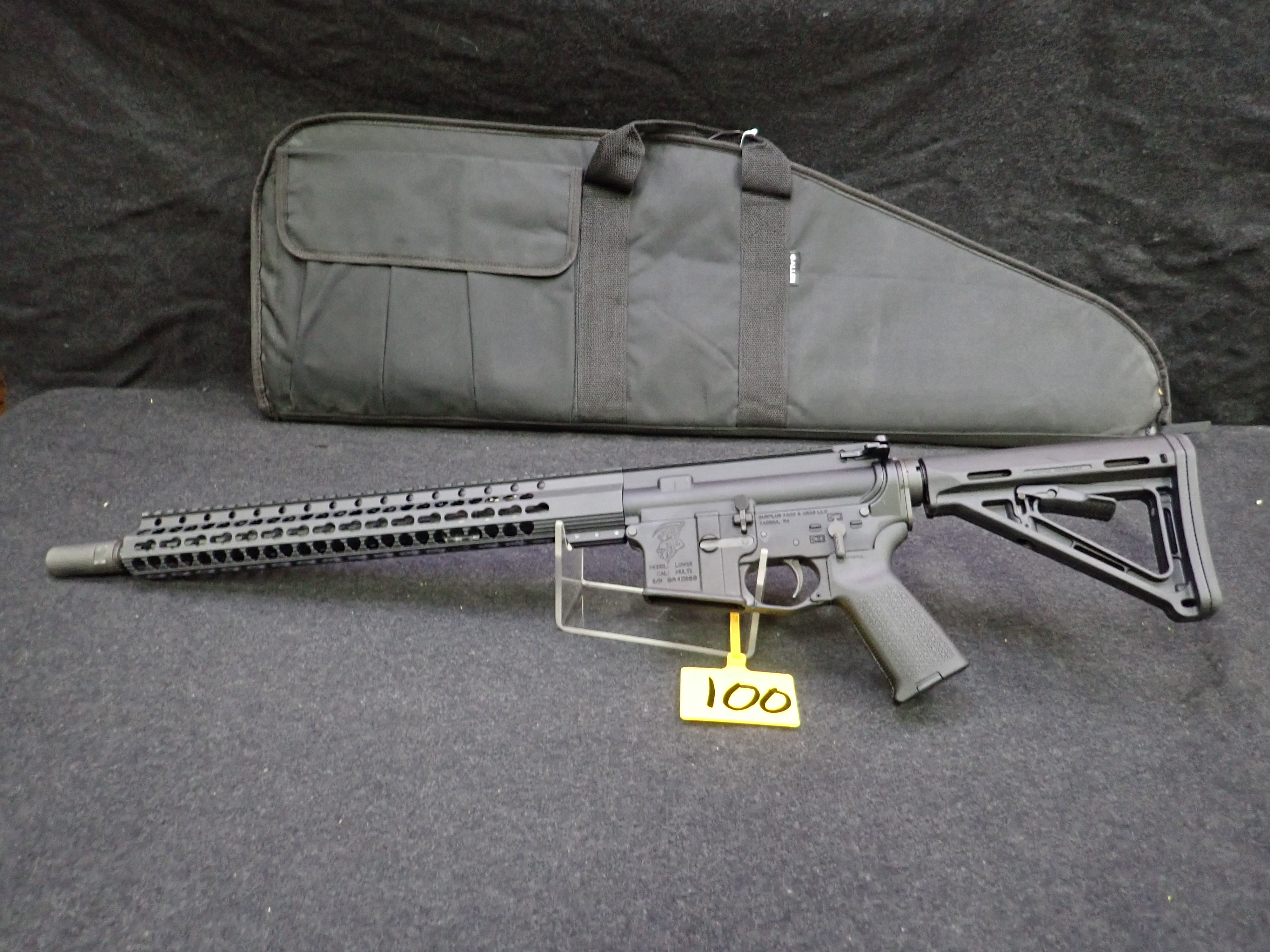 300 BLACKOUT SEMI-AUTOMATIC RIFLE, 16" BARREL, "REAPER" ENGRAVED W/SOFT CASE (UNUSED, THIS FIREARM ALSO REQUIRES AN 11% FEDERAL EXCISE TAX)