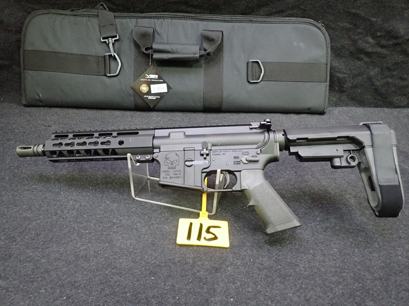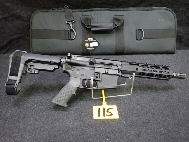 5.56 SEMI-AUTOMATIC PISTOL, 8" BARREL, SBA3 PISTOL BRACE, "SKULL" ENGRAVED (UNUSED, THIS FIREARM ALSO REQUIRES AN 11% FEDERAL EXCISE TAX)