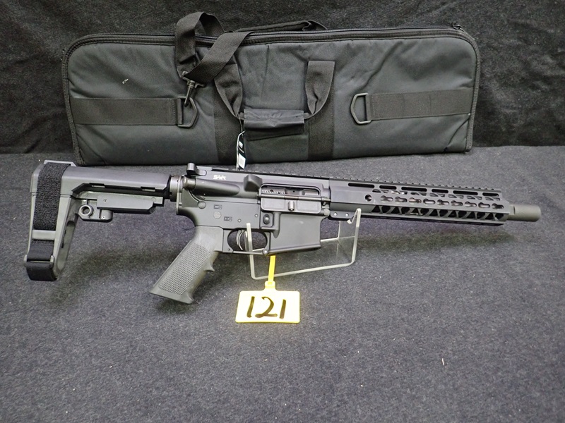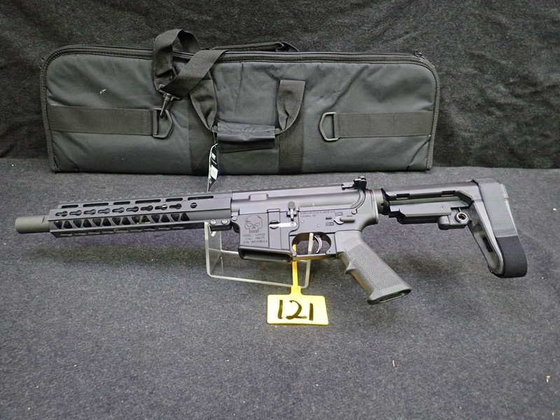 300 BLACKOUT SEMI-AUTOMATIC PISTOL, 10.5" BARREL, SBA3 PISTOL BRACE, "SKULL" ENGRAVED W/SOFT CASE (UNUSED, THIS FIREARM ALSO REQUIRES AN 11% FEDERAL EXCISE TAX)