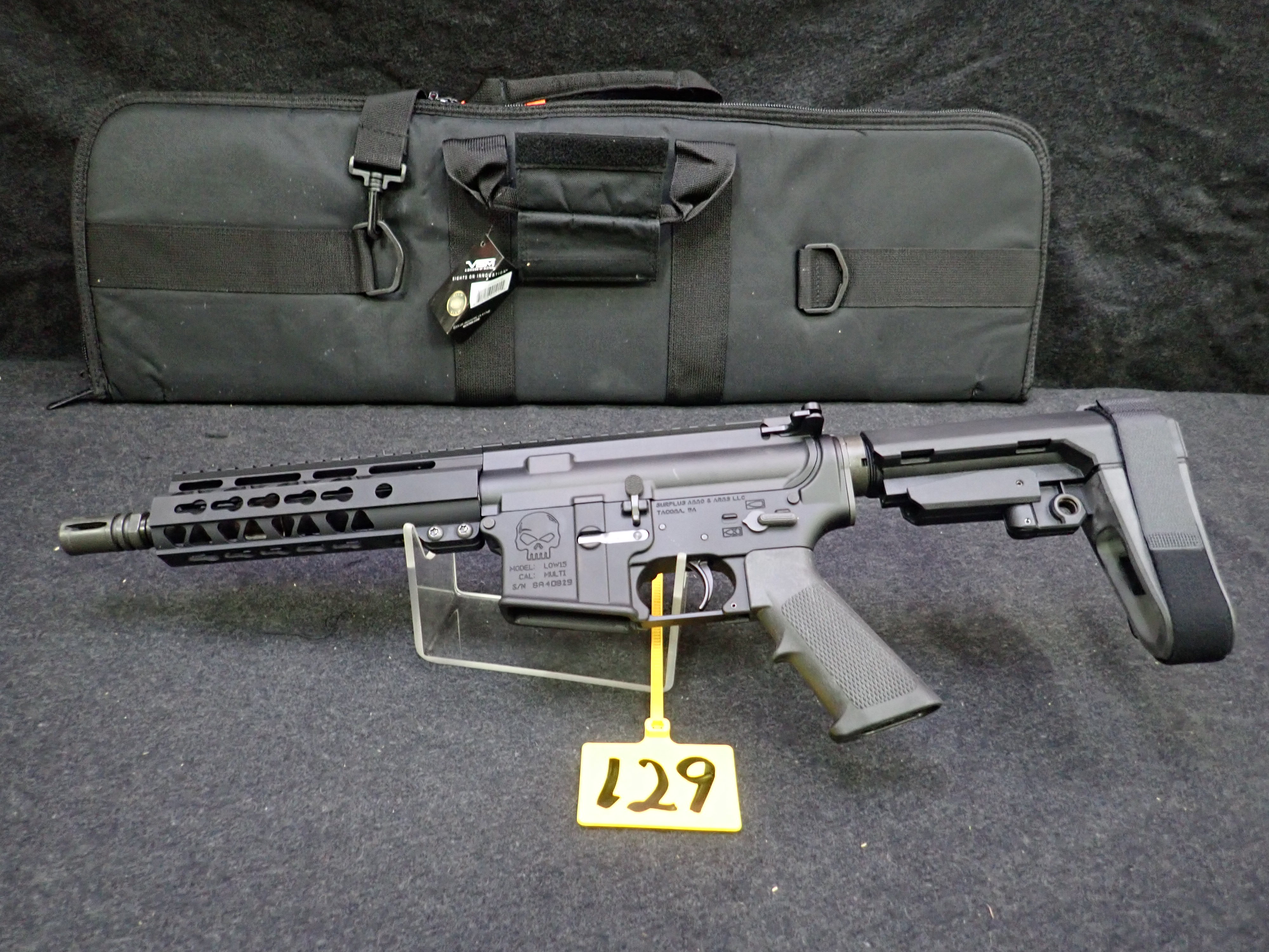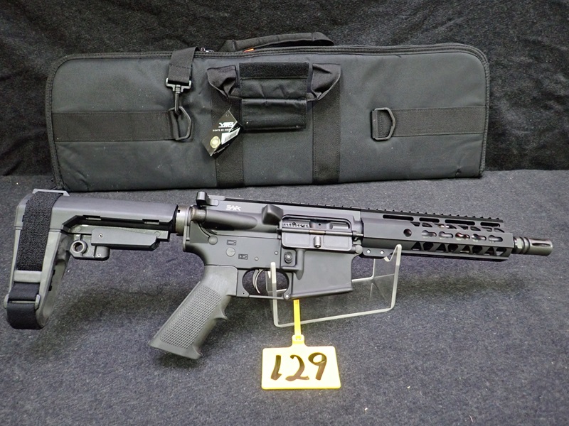 5.56 SEMI-AUTOMATIC PISTOL, 8" BARREL, SBA3 PISTOL BRACE, "SKULL" ENGRAVED W/SOFT CASE (UNUSED, THIS FIREARM ALSO REQUIRES AN 11% FEDERAL EXCISE TAX)