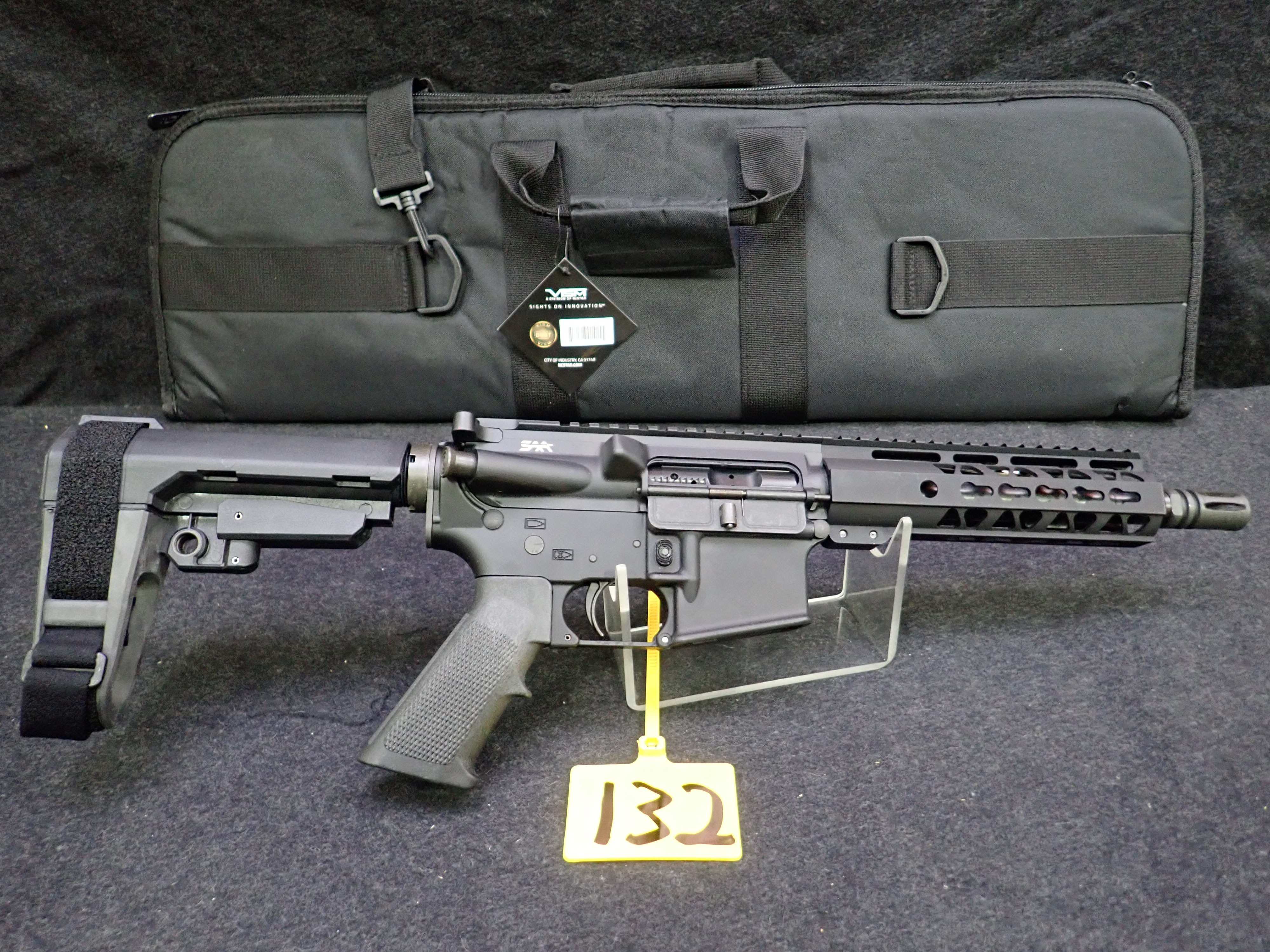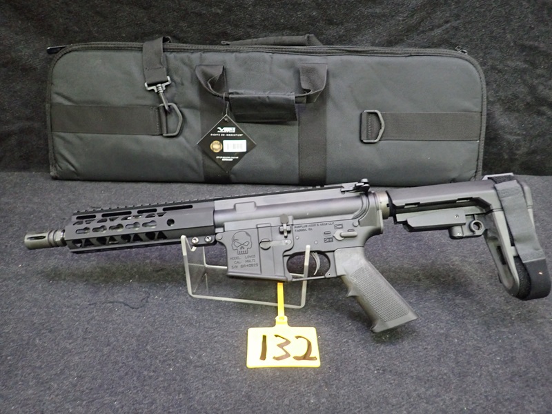 5.56 SEMI-AUTOMATIC PISTOL, 8" BARREL, SBA3 PISTOL BRACE, "SKULL" ENGRAVED W/SOFT CASE (UNUSED, THIS FIREARM ALSO REQUIRES AN 11% FEDERAL EXCISE TAX)