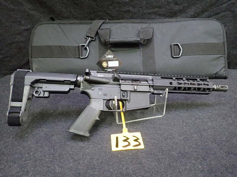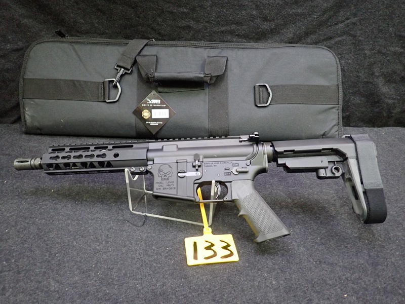 5.56 SEMI-AUTOMATIC PISTOL, 8" BARREL, SBA3 PISTOL BRACE, "SKULL" ENGRAVED W/SOFT CASE (UNUSED, THIS FIREARM ALSO REQUIRES AN 11% FEDERAL EXCISE TAX)