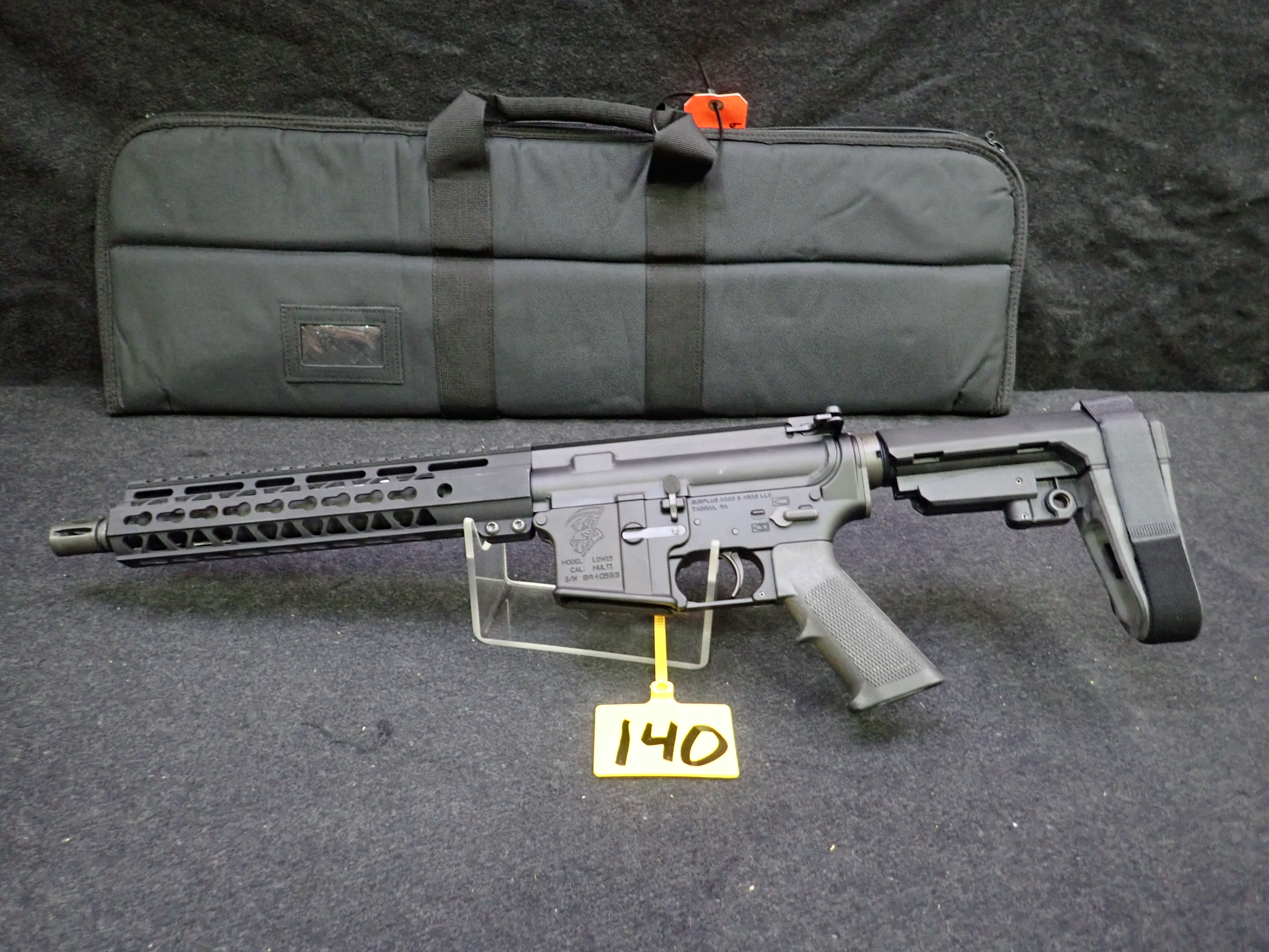 5.56 SEMI-AUTOMATIC PISTOL, 10.5" BARREL, SBA3 PISTOL BRACE, "REAPER' ENGRAVED W/SOFT CASE (UNUSED, THIS FIREARM ALSO REQUIRES AN 11% FEDERAL EXCISE TAX)