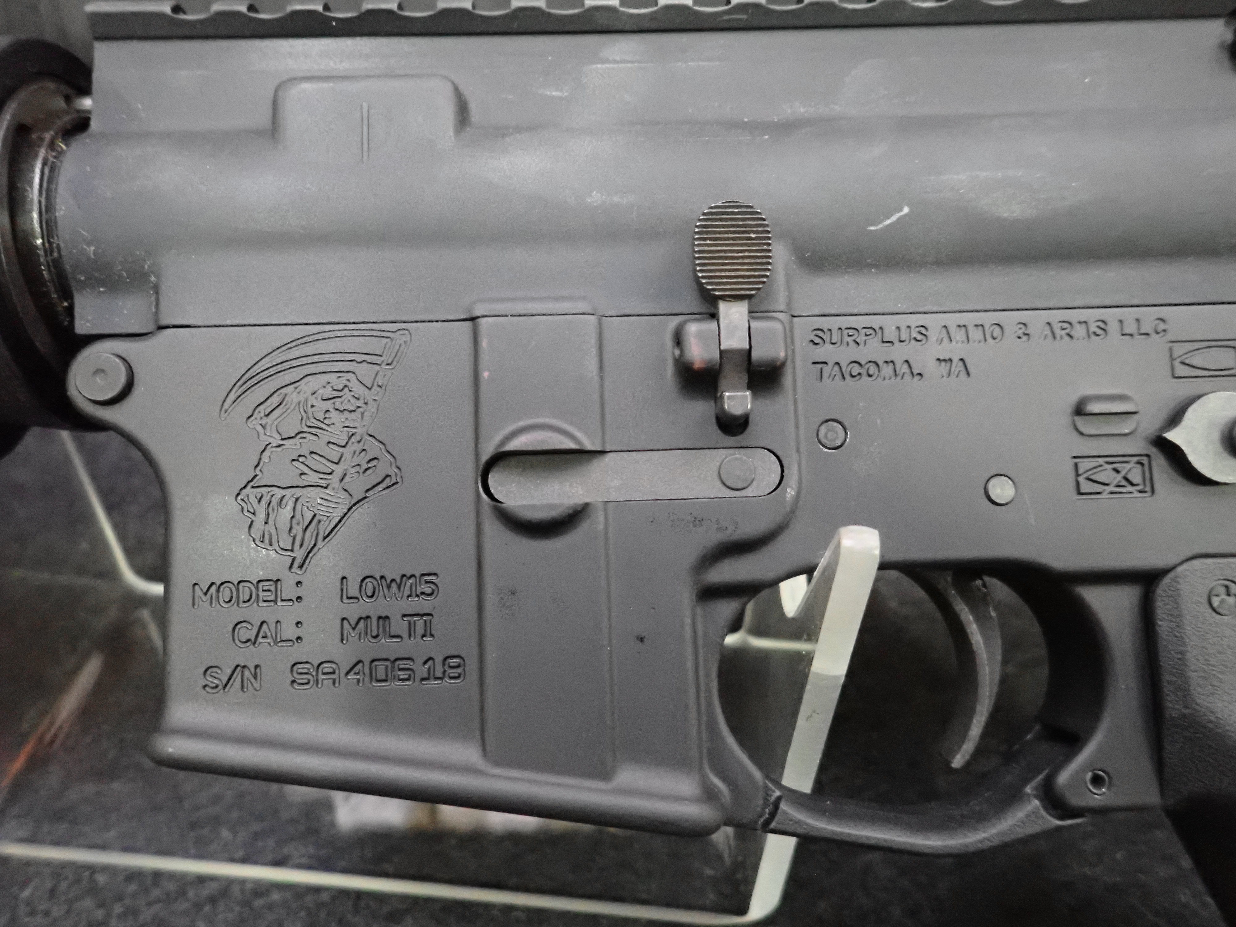 300 BLACKOUT SEMI-AUTOMATIC RIFLE, 16" BARREL, "REAPER" ENGRAVED W/SOFT CASE (UNUSED, THIS FIREARM ALSO REQUIRES AN 11% FEDERAL EXCISE TAX)