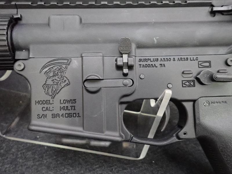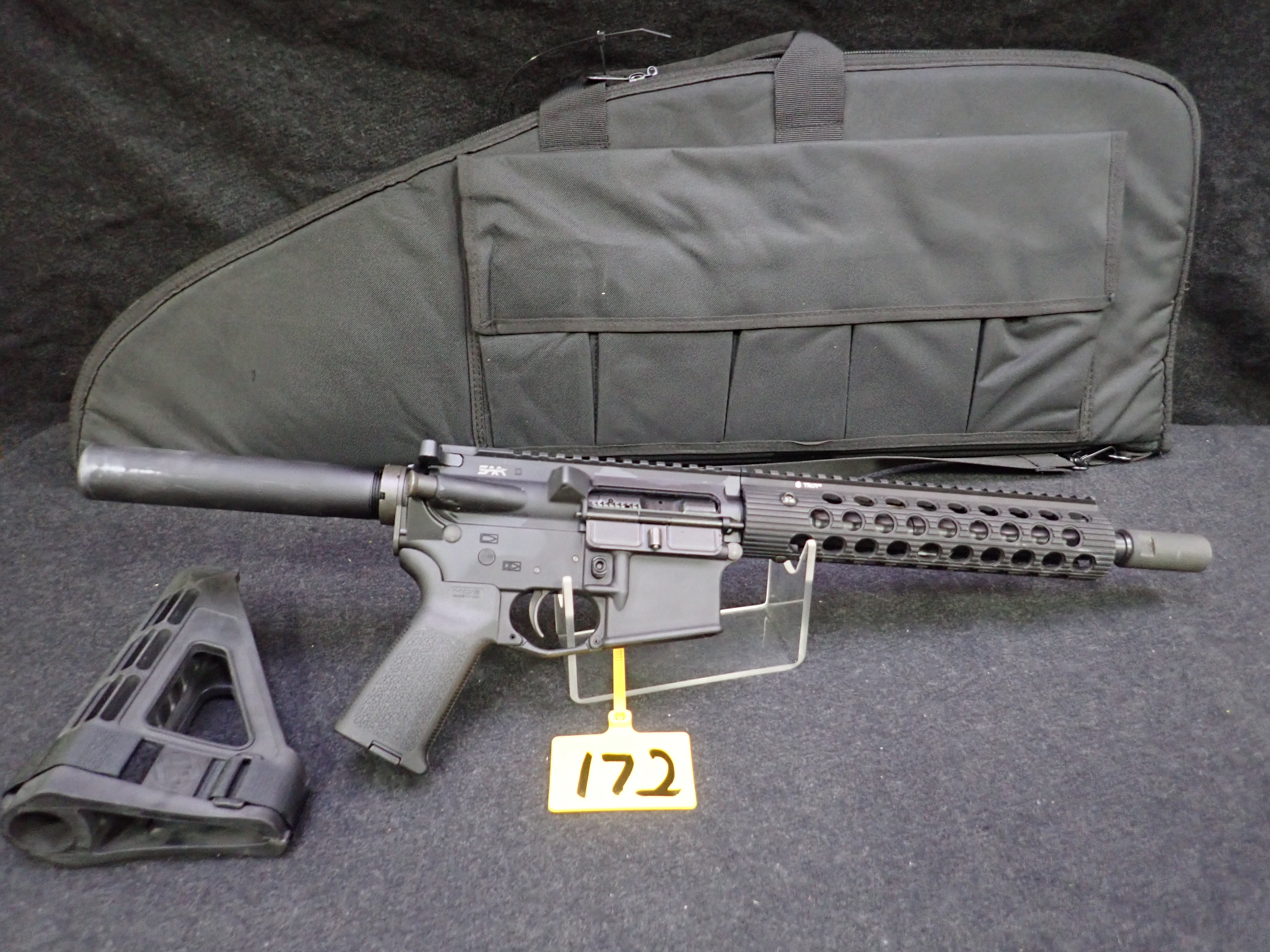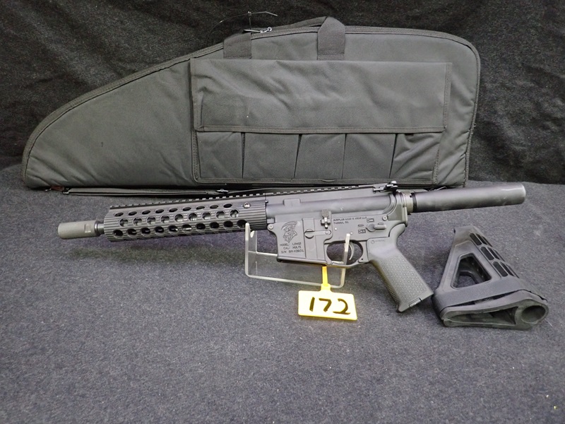 300 BLACKOUT SEMI-AUTOMATIC PISTOL, 10.5" BARREL, SBM4 PISTOL BRACE, "REAPER" ENGRAVED W/SOFT CASE (UNUSED, THIS FIREARM ALSO REQUIRES AN 11% FEDERAL EXCISE TAX)