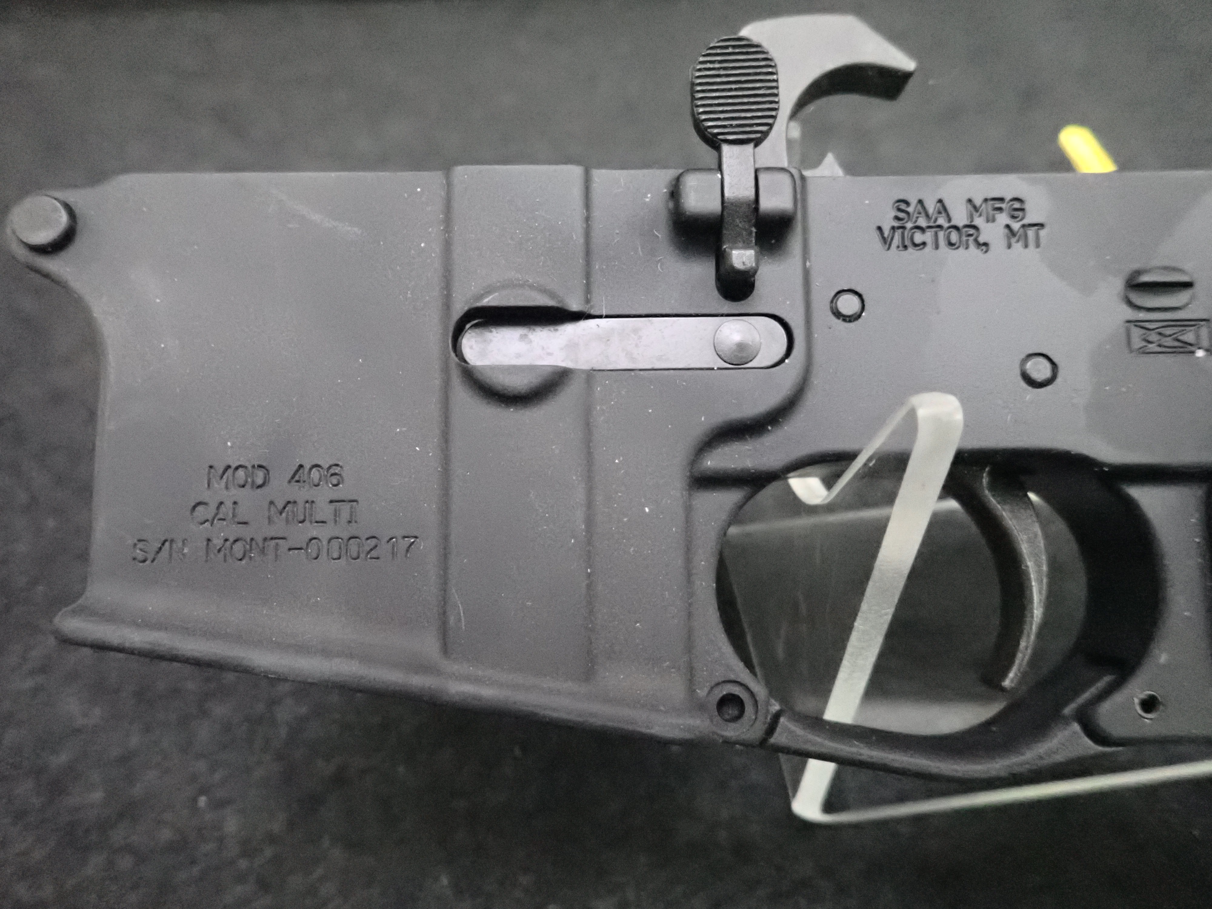 ASSEMBLED LOWER RECEIVER W/STOCK & GRIP (UNUSED, THIS FIREARM ALSO REQUIRES AN 11% FEDERAL EXCISE TAX)