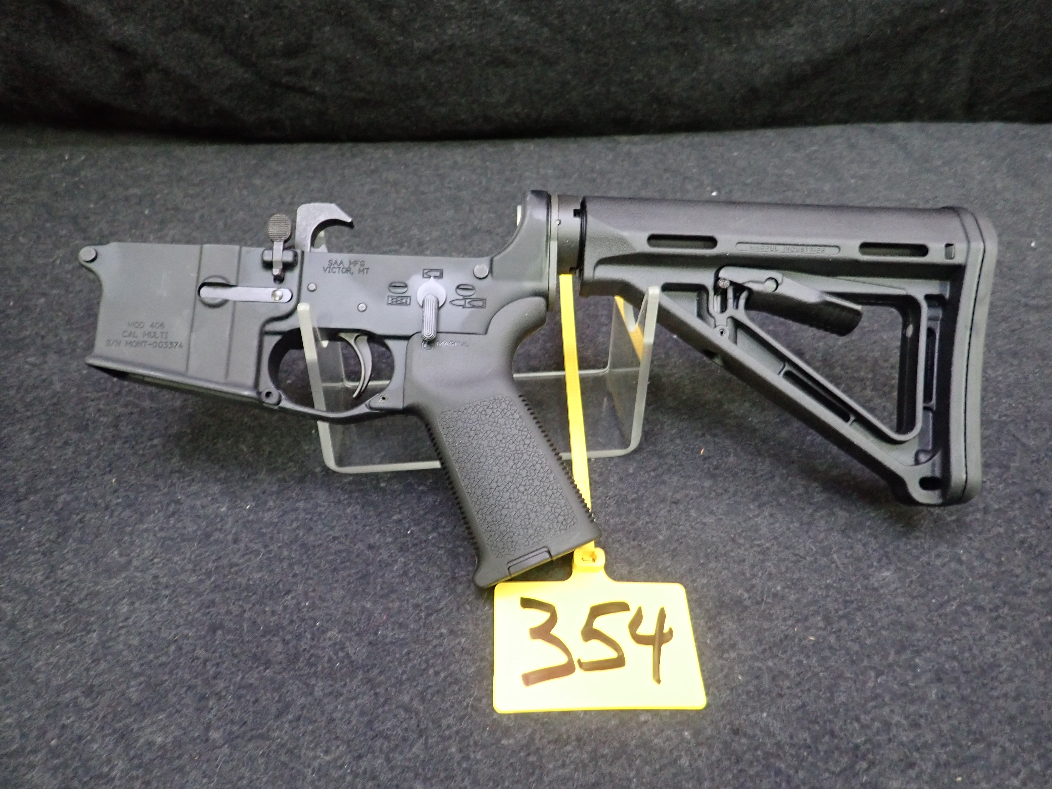 ASSEMBLED LOWER RECEIVER W/STOCK & GRIP (UNUSED, THIS FIREARM ALSO REQUIRES AN 11% FEDERAL EXCISE TAX)